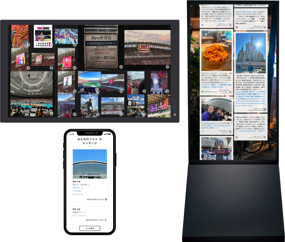 SNSの投稿を取得して、サイネージを自動更新。NGワードや検閲などの安心機能も充実。